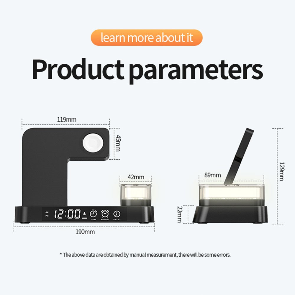 - 3-in-1 multifunctional design combines a wireless charger for your phone and watch, a magnetic night light, and an alarm clock in one compact and convenient device—perfect for home or travel use.
