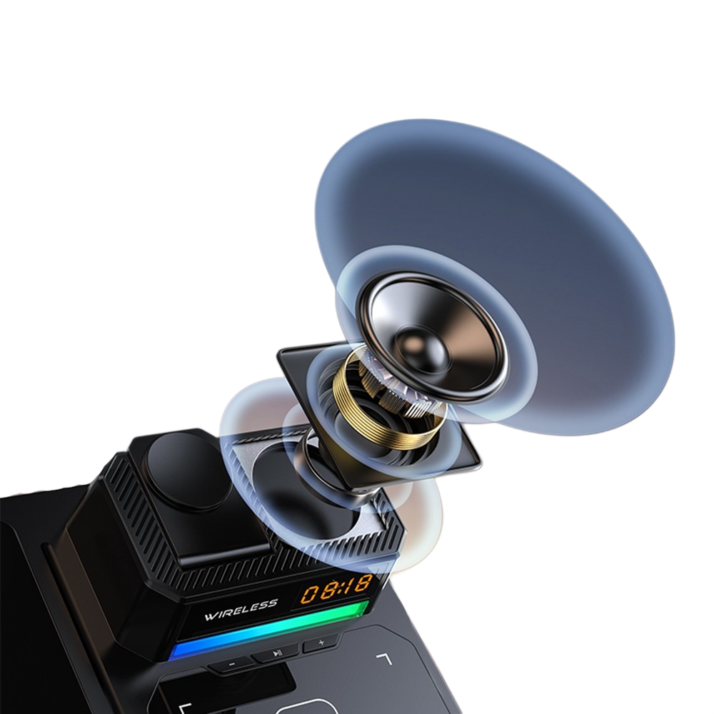 - 3-in-1 multifunctional design: phone stand, Bluetooth speaker, digital clock, ambient light, and wireless charging for phone, earbuds, and smartwatch