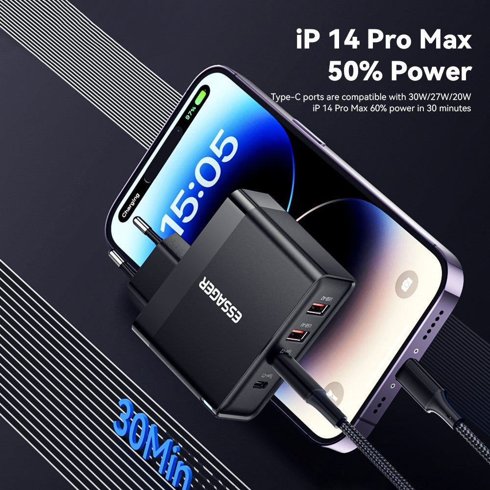 - Equipped with 2 × USB-C + 2 × USB-A ports, allowing you to power laptops, tablets, smartphones, and earphones simultaneously with stable performance.