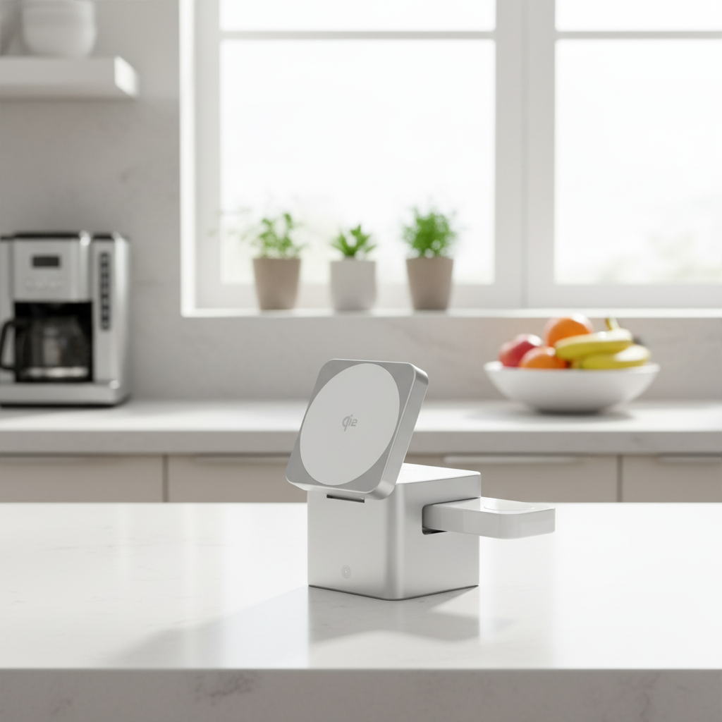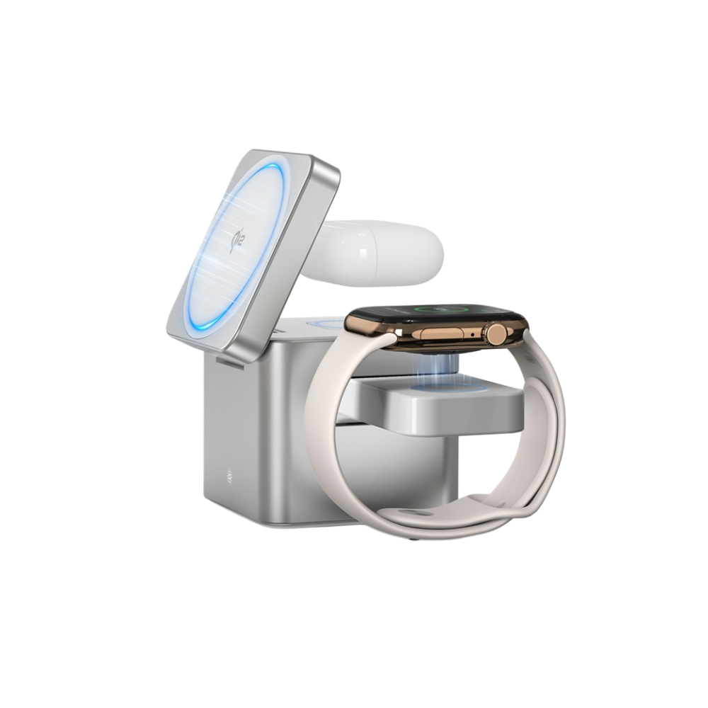 - Qi2 Certified 3-in-1 wireless charger — safely powers your iPhone, Apple Watch, and AirPods simultaneously.