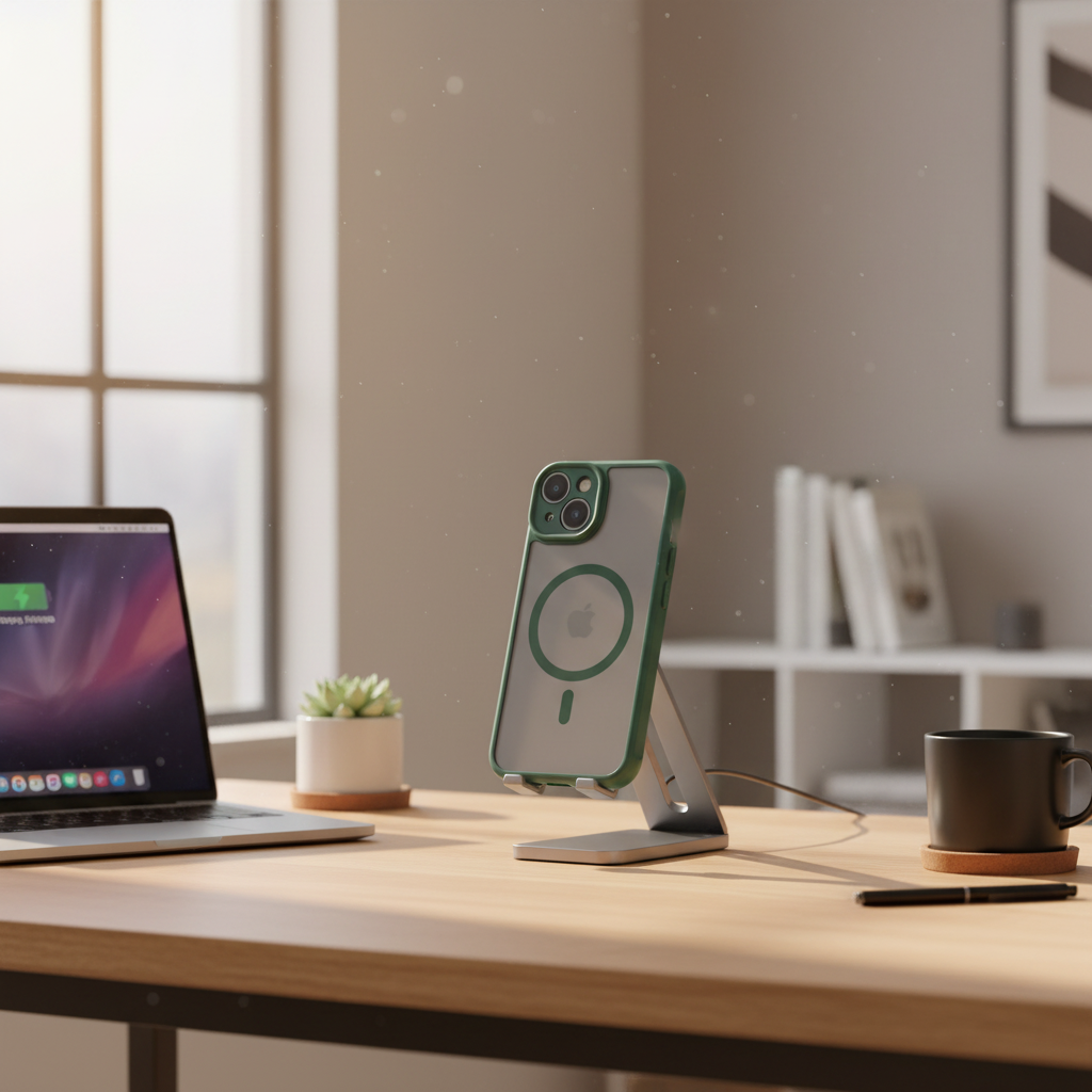 The case includes a perfectly aligned circular magnetic zone on the back, allowing your phone to snap securely onto MagSafe chargers and accessories for stable, effortless wireless charging.