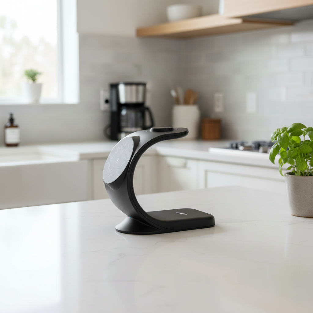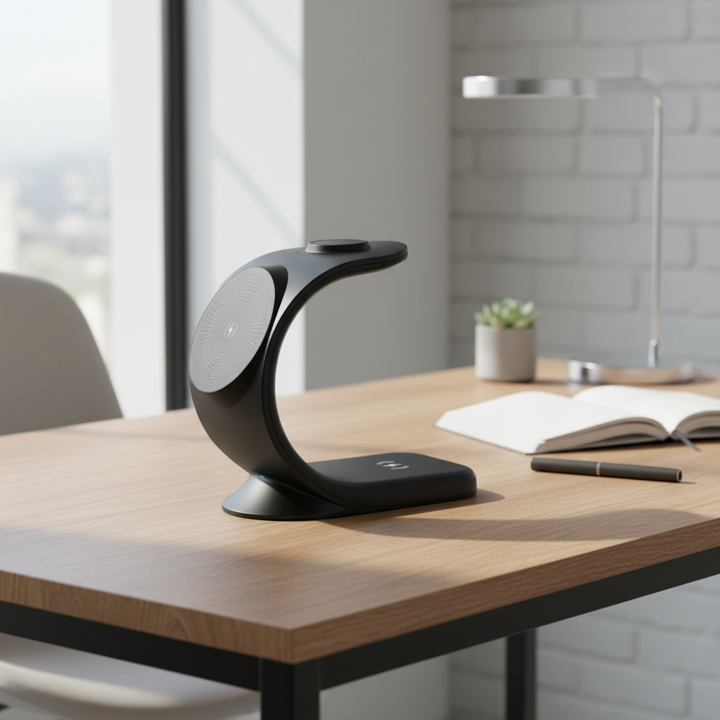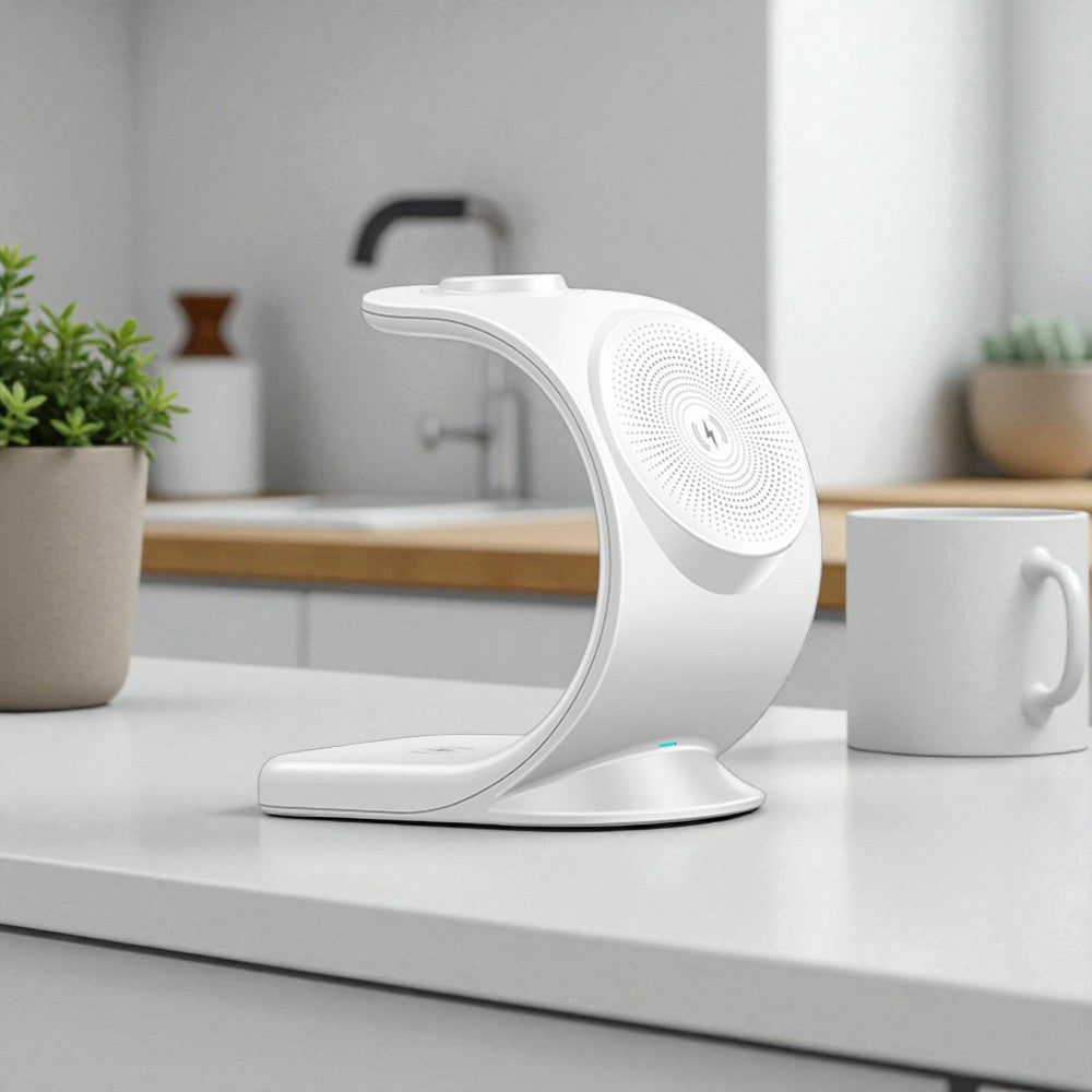 A convenient 3-in-1 magnetic charging station that brings your phone, earbuds, and Apple Watch together in one organized spot, making everyday charging simpler and more streamlined.